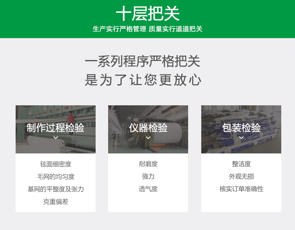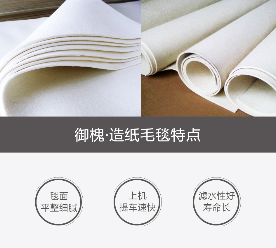 特点:脱水性好,尺寸规格稳定、抗污、耐磨性能强,使用寿命长。克重950—1400g/㎡
